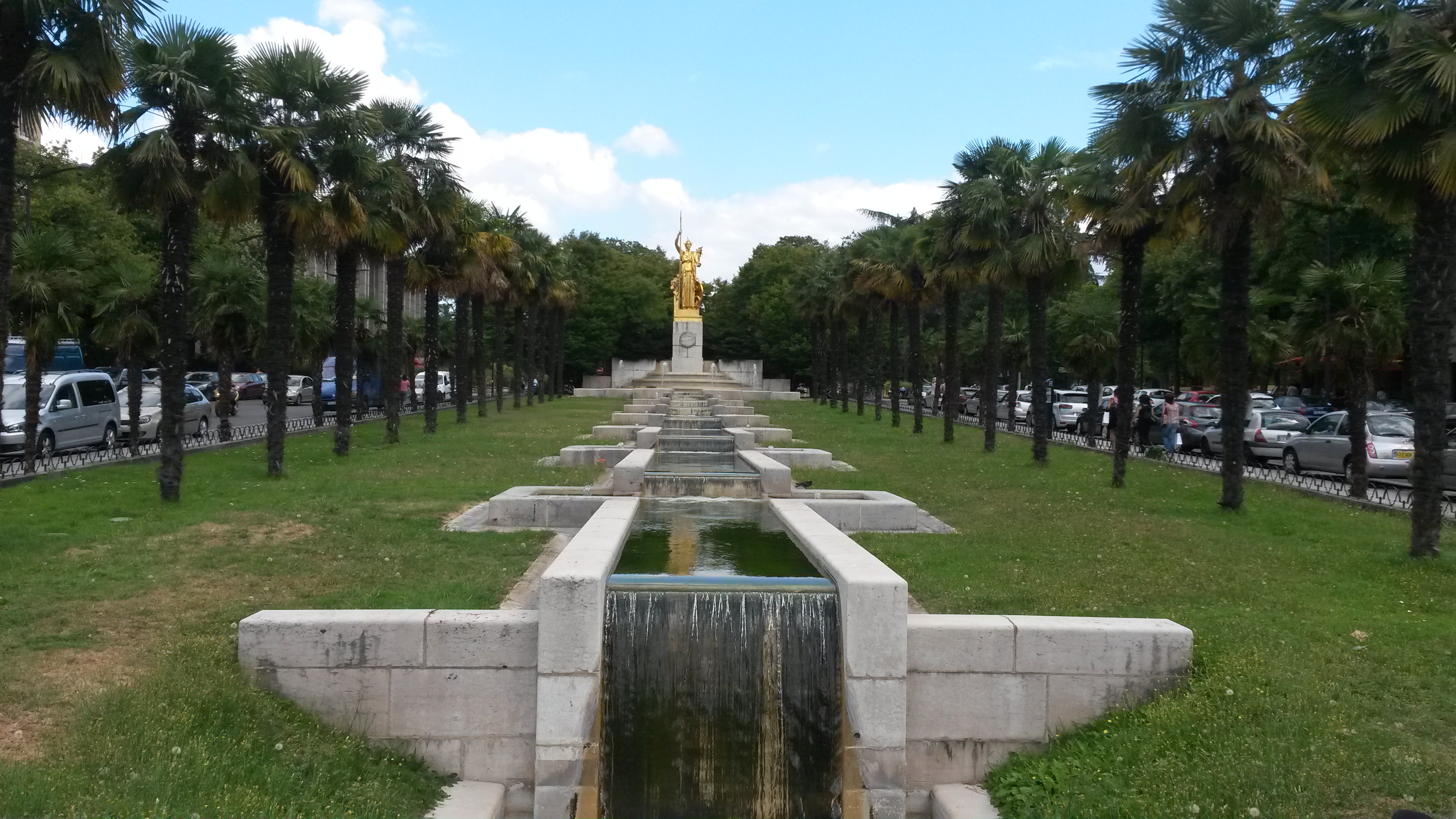 Au fond de l’allée vous apercevez la magnifique statue en bronze d’Athéna réalisée pour l’exposition universelle par Léon-Ernest Drivier, un élève de Rodin.