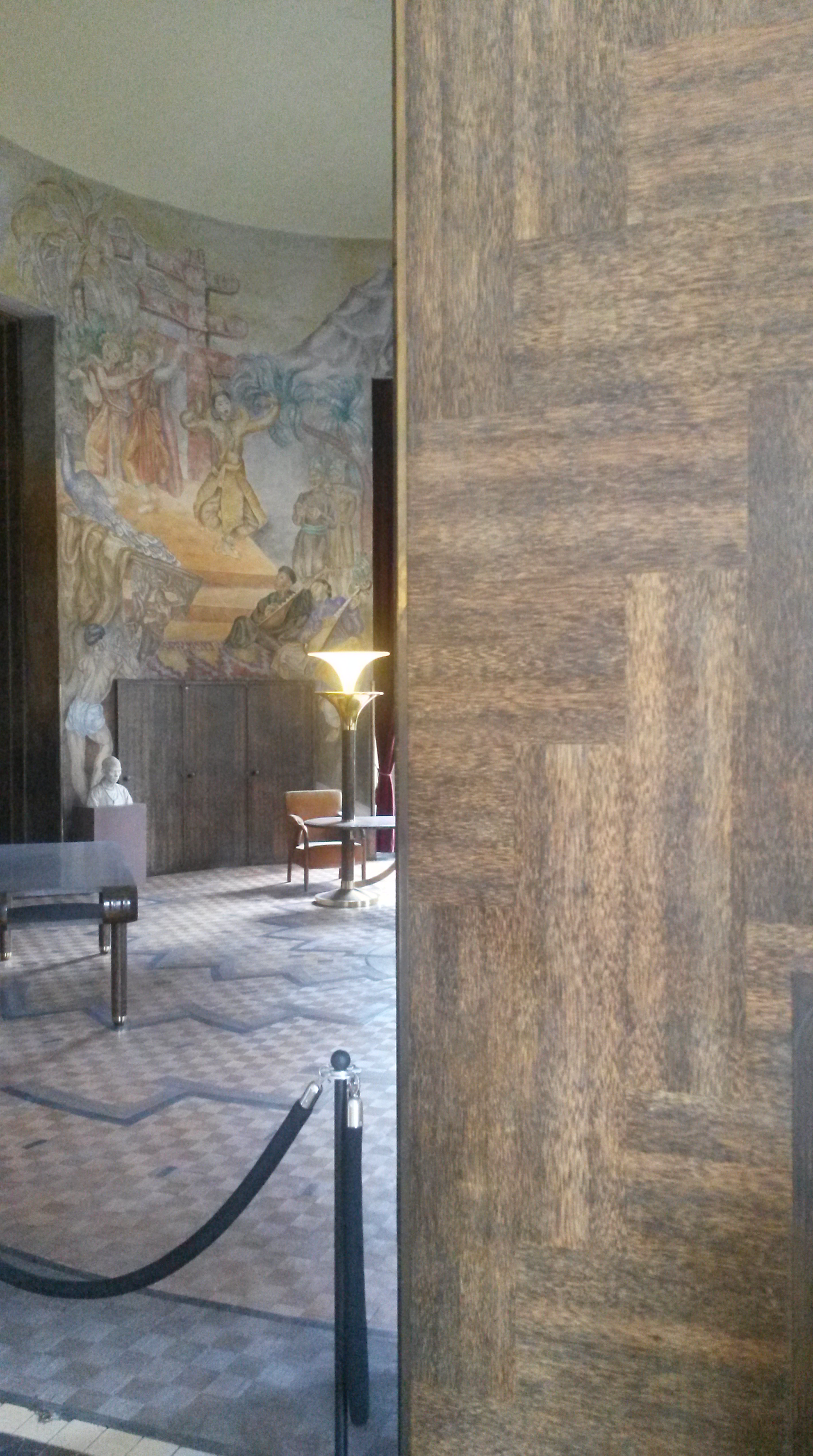 Le bois de palmier était également très prisé en ébénisterie, surtout en placage de mobilier du style Art Déco. Deux salons situés à chaque extrémité du Pavillon contiennent de superbes meubles Art Déco. En particulier, la massive porte d’entrée du salon de réception du Maréchal Lyautey, commissaire Général de l’expostion coloniale de 1931, est réalisée en bois de palmier du Gabon dit « Patawa ».